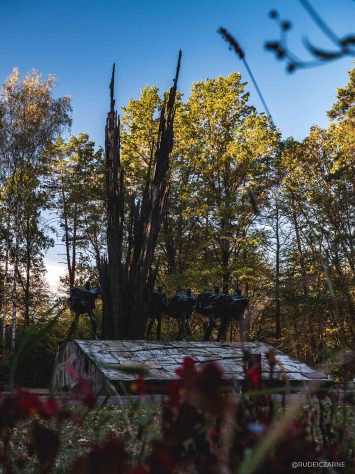 W 1958 roku utworzono tutaj cmentarz wojskowy, a cała wielu poległych, którzy pochowani byli w lasach ekshumowano i przeniesiono na cmentarz wojskowy. Do dzisiaj jednak w lesie znaleźć można pojedyncze grobowce poległych, stworzone przez ich rodziny. W 1974 roku, w 30. rocznicę bitwy postawiono tutaj pomnik Czynu Partyzanckiego autorstwa Bronisława Chromego. Przedstawia 5 biegnących partyzantów w momencie, w którym wybucha pomiędzy nimi pocisk. Nadaje w tym miejscu pewną atmosferę mistycyzmu i zadumy…
