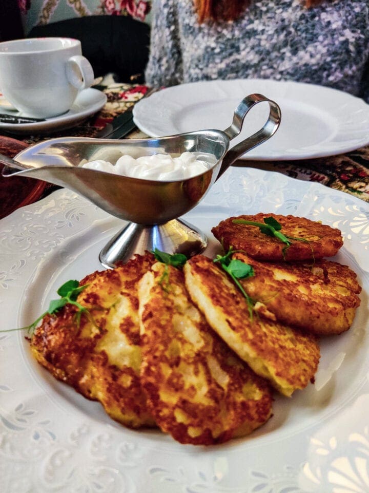 Warto także spróbować ukraińskiej odmiany placków ziemniaczanych, czyli Deruny. Bardzo delikatne, serwowane najczęściej jako przystawka, z kwaśną śmietaną. A jeśli chcesz swoje danie uzupełnić czymś bardzo aromatycznym spróbuj żarkoje, taki typ ukraińskiego gulaszu. Wyśmienity i fantastycznie rozgrzewa!