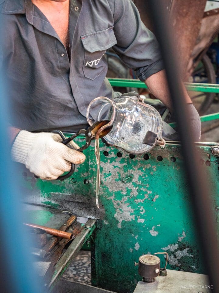 Będąc hutnikiem w dziale produkcji ręcznej trzeba mieć też niezwykłą siłę. Pamiętaj, że masa szklana waży, na piszczeli, służącej do ręcznego formowania wyrobów szklanych, można mieć nawet 15kg masy szklanej. Nie ma więc wątpliwości, że jest to praca wymagająca wiele siły, zdolności manualnych, wytrzymałości, której należy się ogromny szacunek. Widząc pracowników huty podczas swojej pracy zupełnie innego znaczenia nabiera każdy szklany produkt w naszych domach. Jesteśmy pod ogromnym wrażeniem każdej osoby, która swoje życie poświęciła na pracę przy szkle.