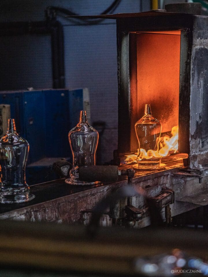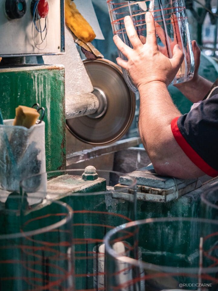 Krośnieńskie szkło nazywane jest bezbarwnym kryształem, znane jest na całym świecie. Pamiętaj też, bo to ewenement, że krośnieńska huta jest w zupełności samowystarczalna. Za produkcją stoją nie tylko hutnicy, maszyny, ale także rzemieślnicy – stolarze, rzeźbiarze, kowale. Huta ma także własne laboratorium i centrum innowacji, własną straż pożarną. Również w dziale maszynowym każdy jeden szklany produkt przechodzi kontrolę jakości. Tutaj jednak za kontrolę tą odpowiadają nowoczesne maszyny zaprogramowane, by sprawdzać proporcje, kształt, mankamenty. Niesamowitym dla nas widokiem był obraz, jak maszyna sama rozpoznaje wady i odsyła szklanki czy kieliszki do poprawy. Tak też w dziale maszynowym jakość jest także na pierwszym miejscu. Wszystko, co związane dzisiaj z hutą Krosno Glass znajduje się na ulicy Tysiąclecia – miejsca, które powstawało jeszcze za czasów Gomułki, a rozwija się po dziś dzień.