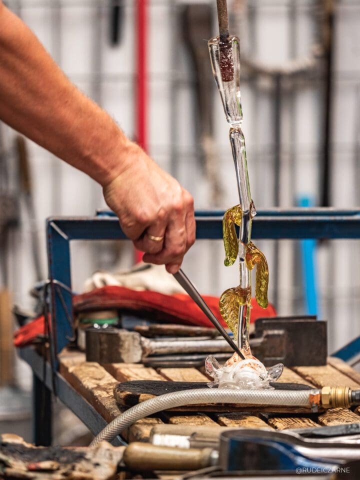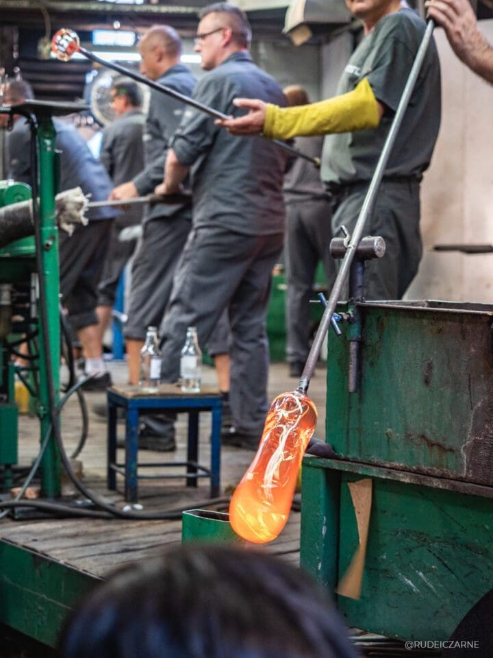 Dalej przewodnik prowadzi grupę do hali hutniczej, gdzie możesz podziwiać na żywo pokaz hutniczy. Artyści, którzy pracują tutaj codziennie przy piecach hutniczych prezentują produkowanie najróżniejszych szklanych przedmiotów i przeprowadzają widza przez magiczny proces. Z rozgrzanej do czerwoności masy szklanej, masy plastycznej, powstają cuda. Zobaczysz także warsztaty i szlifowanie, grawerowanie szkła, tworzenie malutkich szklanych figurek, a także jak tworzone są szklane witraże czy też szklane dzieła sztuki za pomocą metody Fusingu. Niezwykłym doświadczeniem jest według nas także podziwianie procesu ręcznego malowania szkła. Proces malowania trwa przynajmniej 2 dni, z racji tego, że każde dzieło malowane jest przynajmniej dwukrotnie. Niesamowita precyzja, której podziwianie Cię zachwyci.