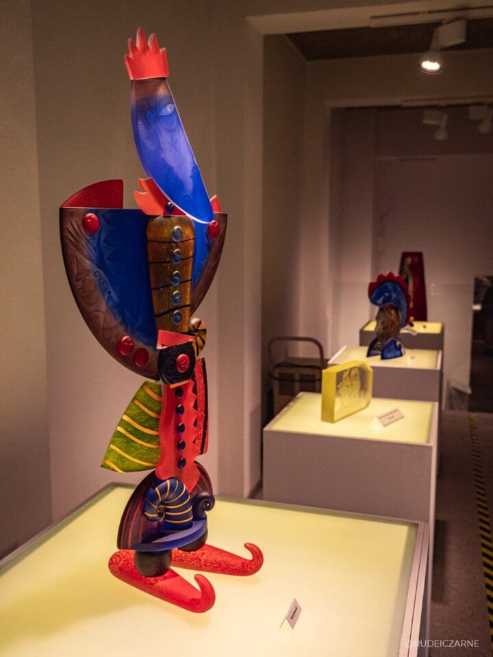 Równie ciekawym miejscem jest także wystawa projektów krośnieńskiej huty szkła, które brały udział w międzynarodowych ekspozycjach i konkursach. Przy projektach szkła pracuje cały sztab projektantów, którzy wymyślają coraz to ciekawsze wzory, unikatowy design i niesamowite kolory. Zrobiło na nas ogromne wrażenie, ile arcydzieł może powstać ze szkła. A huta nie stoi w miejscu, idzie z duchem świata tworząc perełki. Dzisiaj krośnieńskie szkło eksportowane jest do ok. 60 krajów świata, cenione przez takie szklane miejsca, jak samo Murano we Włoszech!
