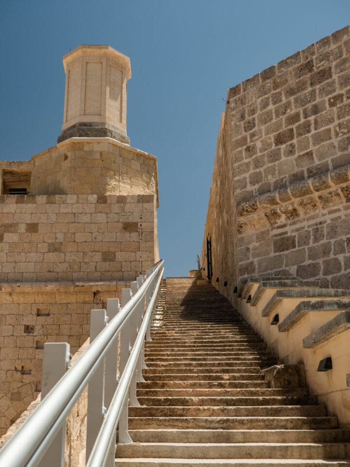 Fort jest dzisiaj podzielony na 2 części – górną i dolną. Dolna ma bardziej charakter typowo obronny – zobaczysz tutaj armaty, siedziby rycerzy, a później wojsk brytyjskich. To także tutaj znajduje się bardzo ciekawa wystawa poświęcona Zakonowi Maltańskiemu, a także wojskom brytyjskim na Malcie i drodze do niepodległości Malty. Nie omiń tej wystawy.