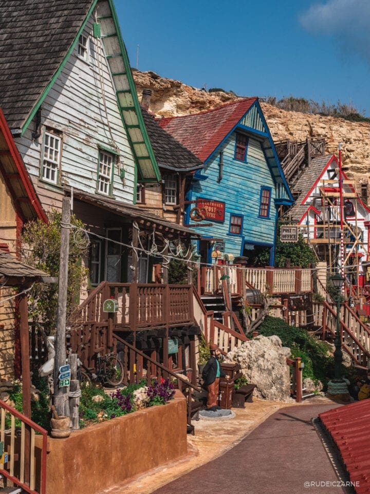 Wioska Popeya na Malcie powstała na potrzeby filmu-musicalu „Popeye”. Miejsce wydawało się idealne – piękna lazurowa zatoka Anchor Bay, dookoła skały, cisza i pustka. Wioskę zaczęto budować w 1979 roku i zbudowano ją w ok. 7 miesięcy. Powstało 19 budynków, a przy powstawaniu wioski brała udział aż 165-osobowa ekipa! Drewno sprowadzane było z Holandii, a gonty do budowy dachów aż z Kanady.