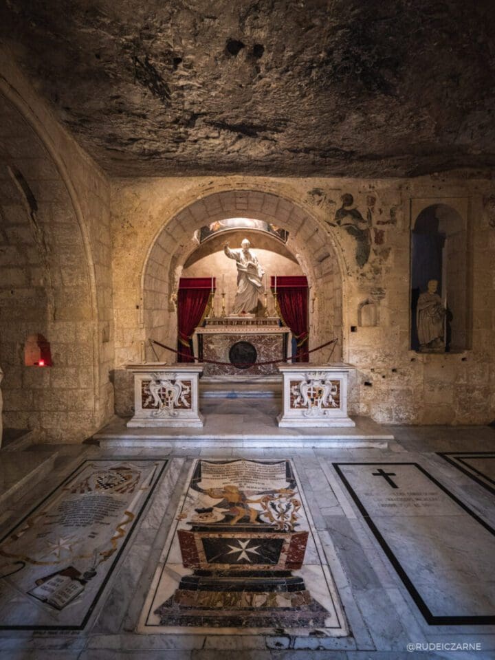 Tajemnicza i klimatyczna Grota św. Pawła znajduje się pod kościołem św. Pawła w Rabacie. Według biblijnej Księgi Dziejów Apostolskich to właśnie tutaj św. Paweł przebywał przez kolejne 3 miesiące, po rozbiciu się o wyspę św. Pawła. Tutaj miał także głosić swoje nauki i nawracać Maltańczyków na chrześcijaństwo. Tutaj także miał dokonywać cudów uzdrowienia, a jedną z uzdrowionych przez niego osób miał być ojciec Publiusza – ówczesnego namiestnika rzymskiego na Malcie. Cud uzdrowienia, ale także szereg innych cudów związanych z działalnością i osobą św. Pawła na Malcie sprawiły, że Malta przeszła na chrześcijaństwo. To właśnie Publiusz został pierwszym biskupem Malty, a w miejscu, gdzie znajdować się miał jego dom, zbudowano później dzisiejszą katedrę św. Pawła w Mdinie.